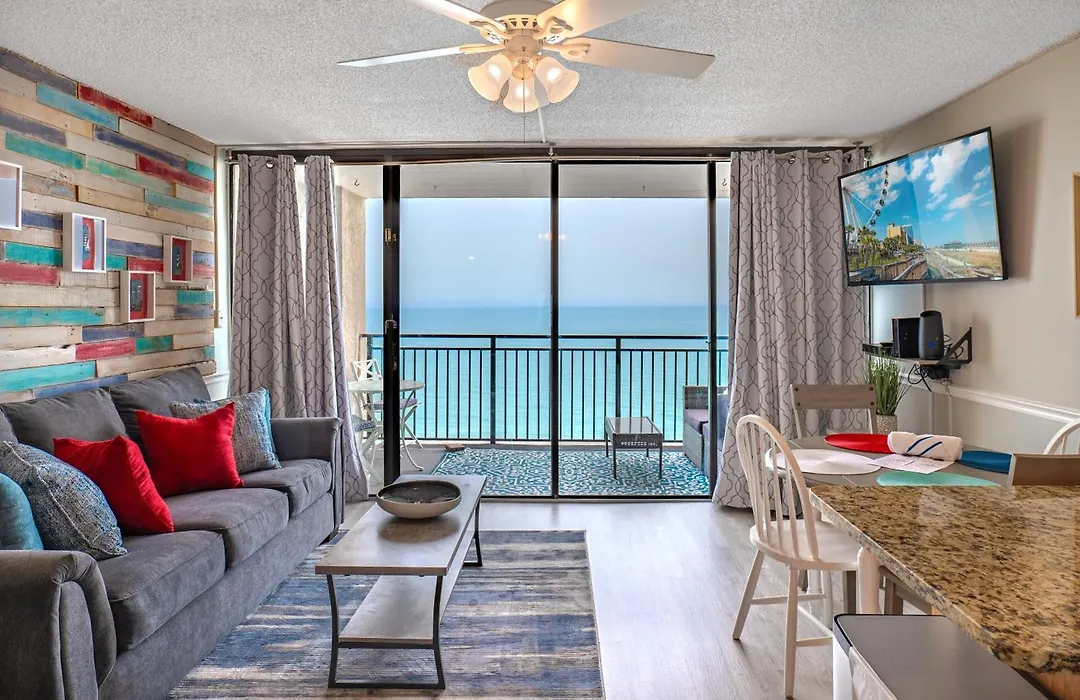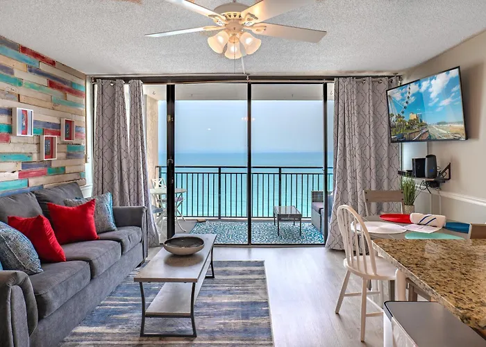 Oceanfront 1 Bedroom King Suite- Ocean Forest Plaza 1911 Myrtle Beach villa offers proximity to such city sites as Myrtle Beach SkyWheel, located approximately a 5-minute walk away. Featuring a Jacuzzi and a sauna, this 1-bedroom beachfront holiday home is around 6 km from Myrtle Waves.